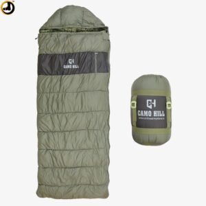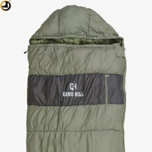 Camo Hill Olive Green Sleeping Bag with Fur Lining, Dual Zippers & Utility Pocket