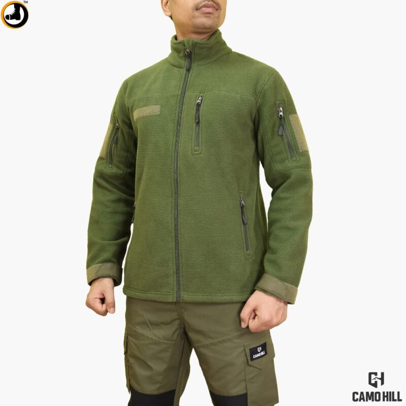 Camo Hill Olive Green Tactical Fleece 5 Zippers Jacket