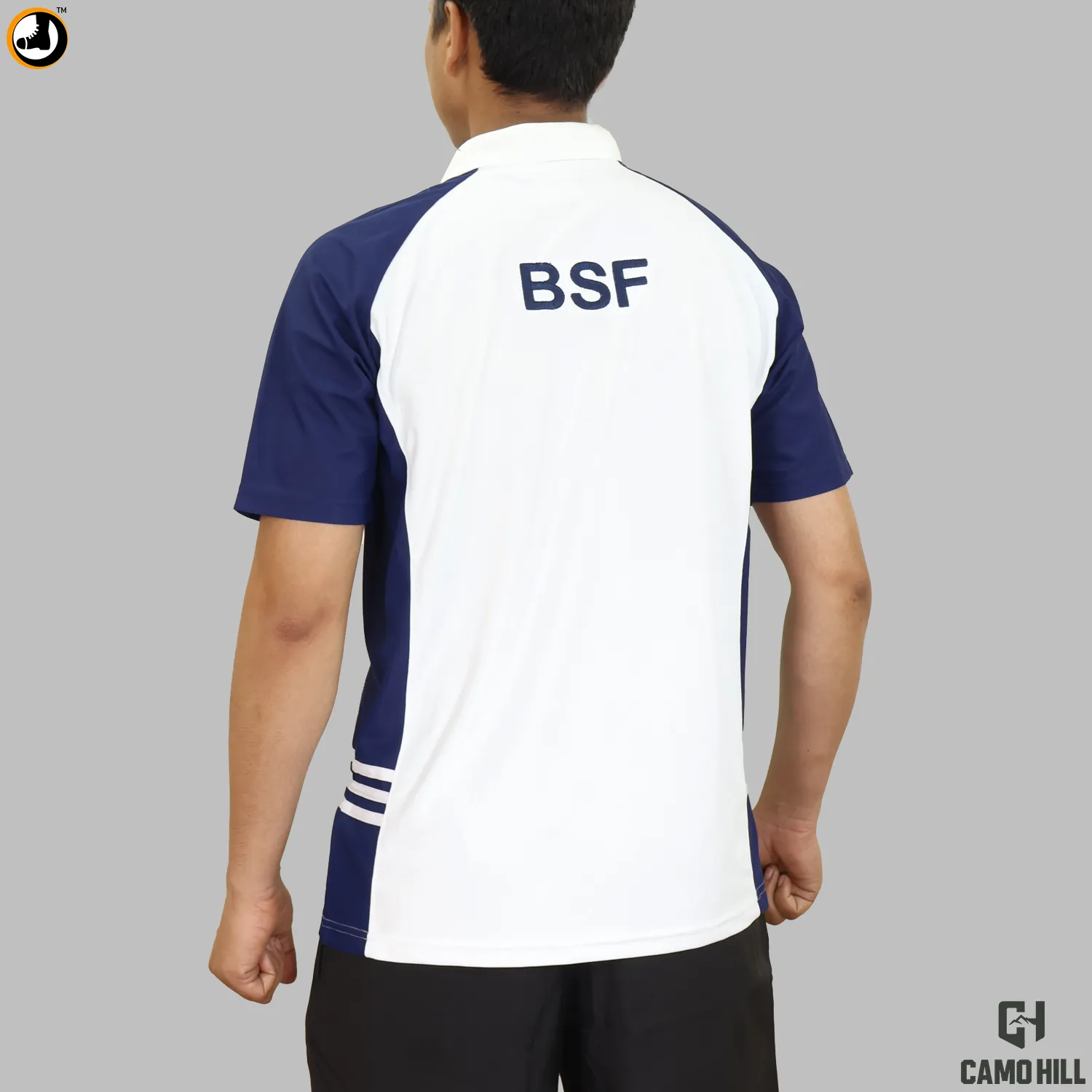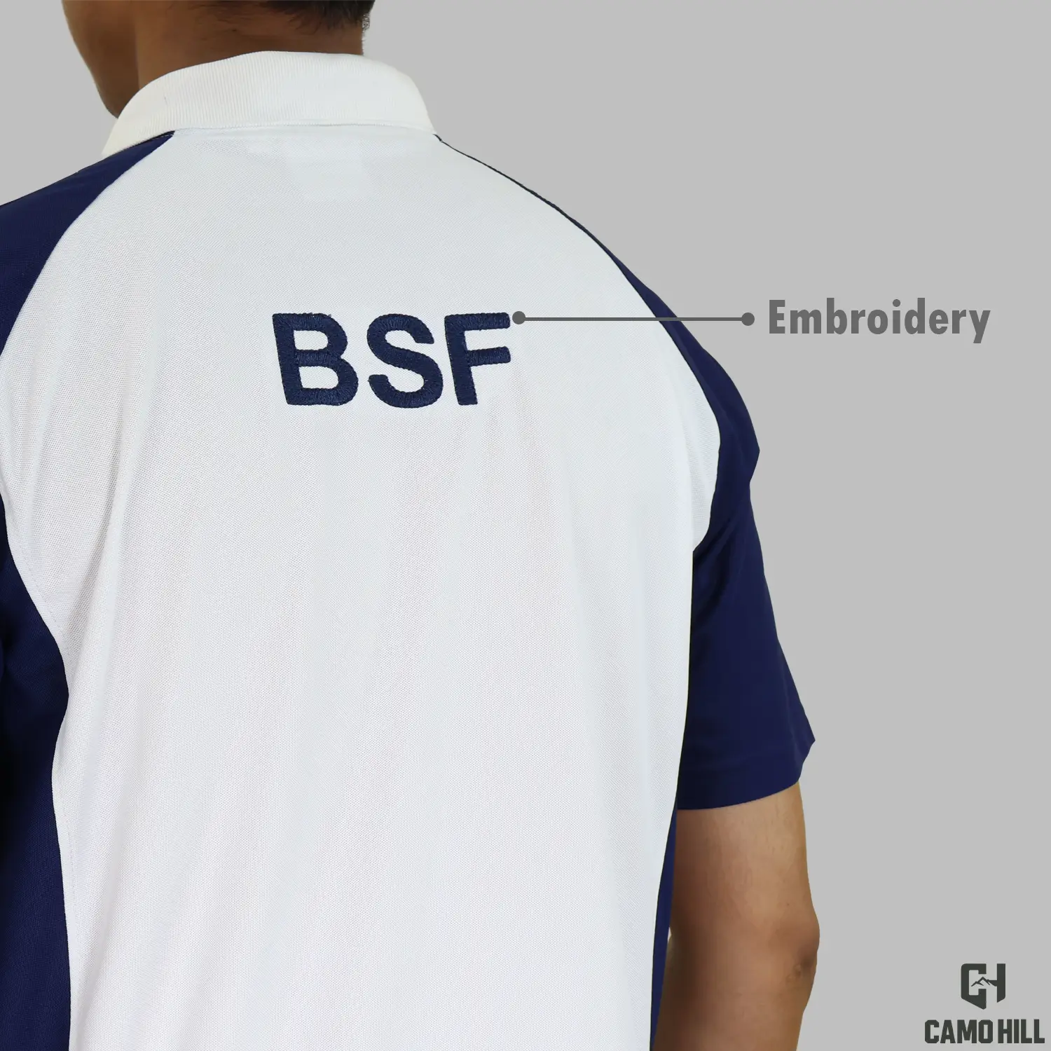 BSF Premium Polo T-Shirt White & Navy with Embroidery