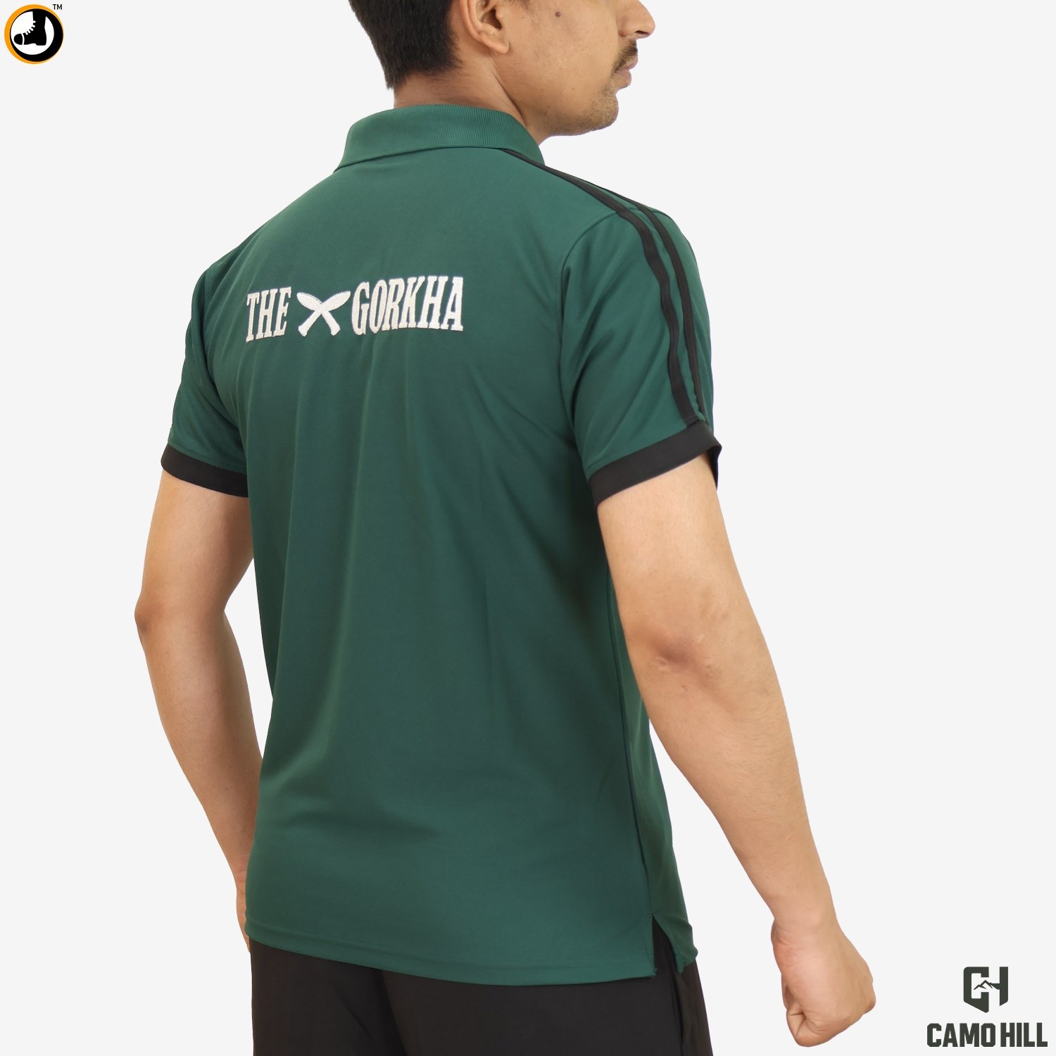 Bold “THE GORKHA” back print with crossed khukri symbol