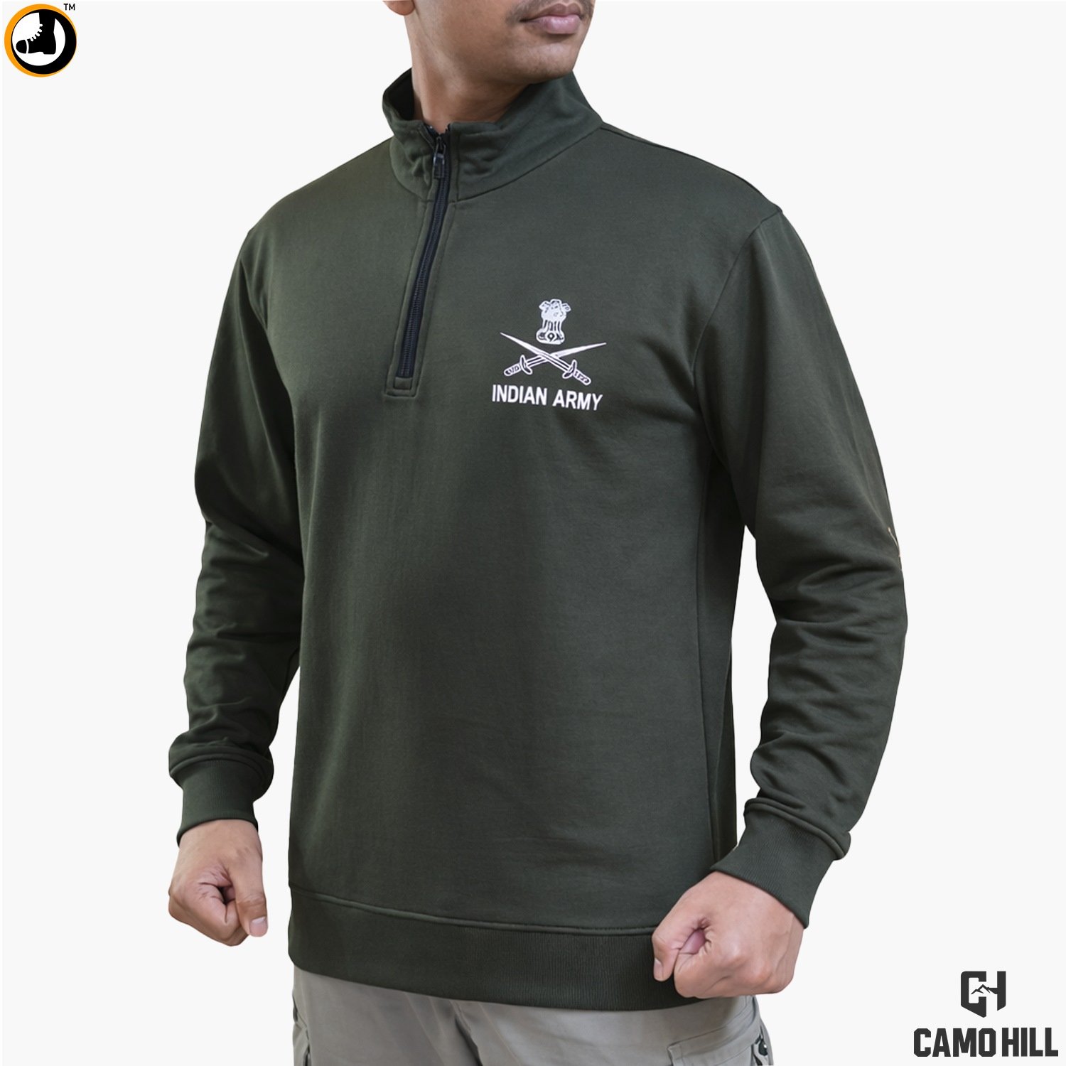 Indian Army Olive Green Sweatshirt – Cotton Blend Brushed Fleece