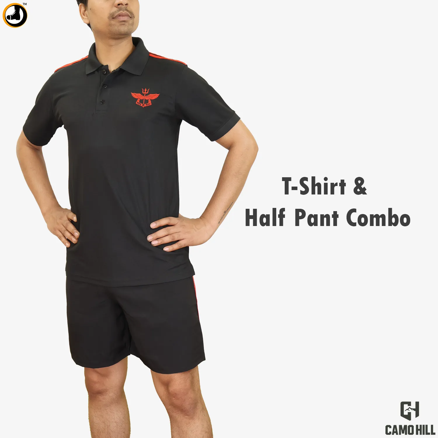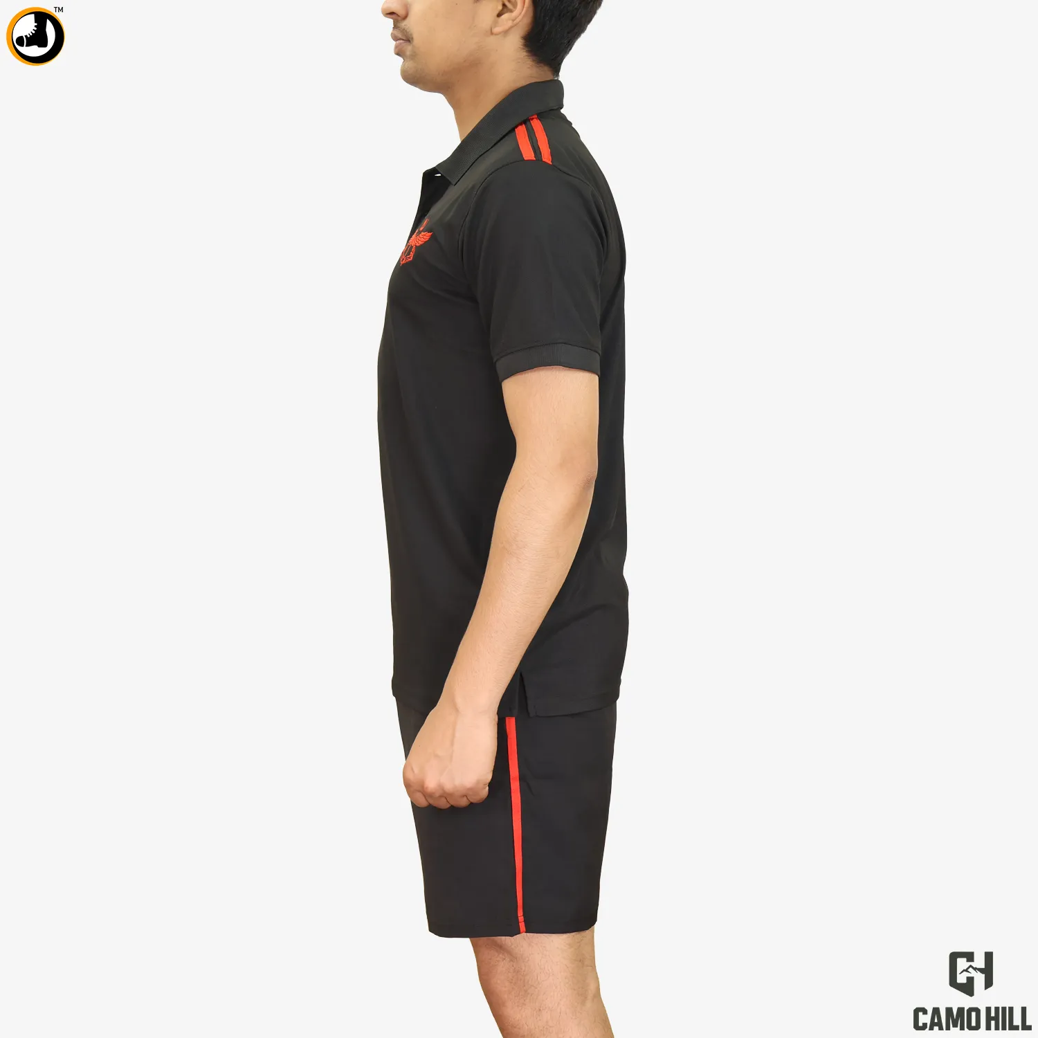 NSG SAG Polo T-Shirt & Shorts Set Black with Red Stripes | Premium Forces Training Combo