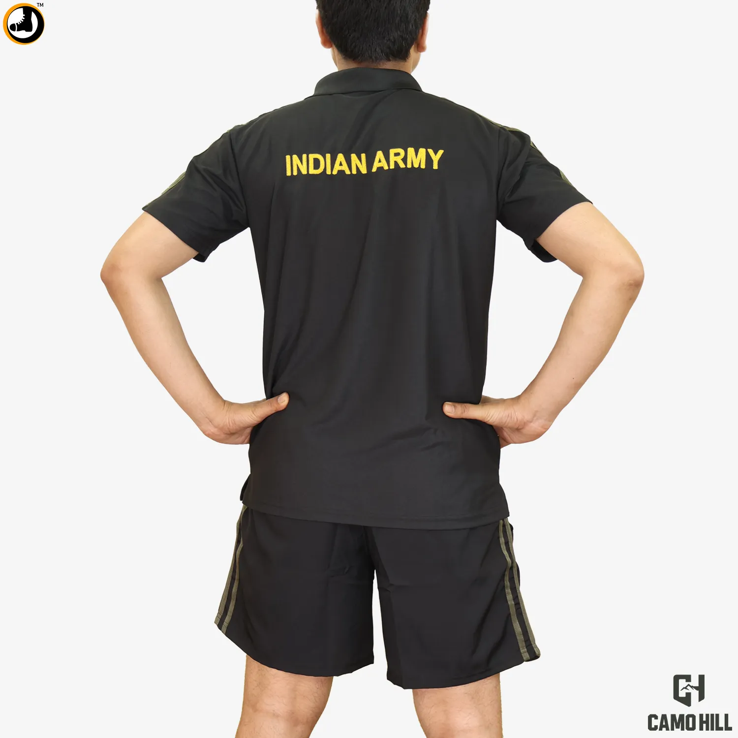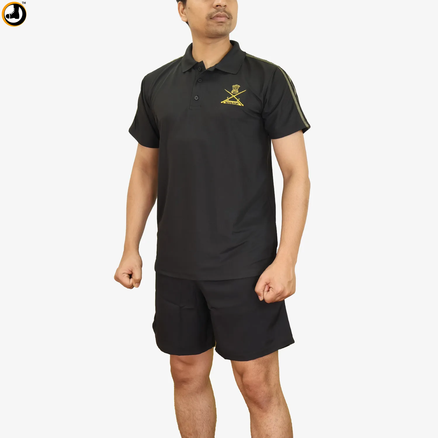 Premium Army Polo T-Shirt & Shorts Set Black | Embroidered Training Combo